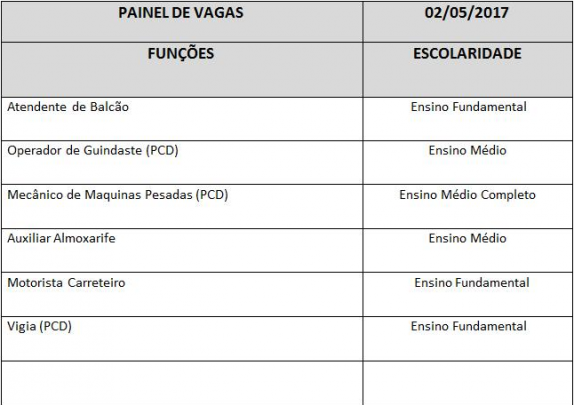 A Casa do Trabalhador de Três Lagoas localizada na Rua Munir Thomé n°86, na área central da cidade, em parceria com a FUNTRAB – Fundação do Trabalho de Mato Grosso do Sul divulga o quadro de vagas disponíveis para esta terça-feira (02).