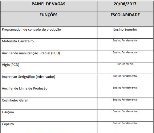 A Casa do Trabalhador de Três Lagoas localizada na Rua Munir Thomé n°86, na área central da cidade, em parceria com a FUNTRAB – Fundação do Trabalho de Mato Grosso do Sul divulga o quadro de vagas disponíveis para esta terça-feira (20).