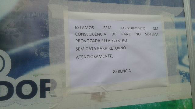 No local, não encontramos nenhum servidor para maiores informações, somente um comunicado Estamos sem atendimento em consequência de pane no sistema provocada pela Elektro