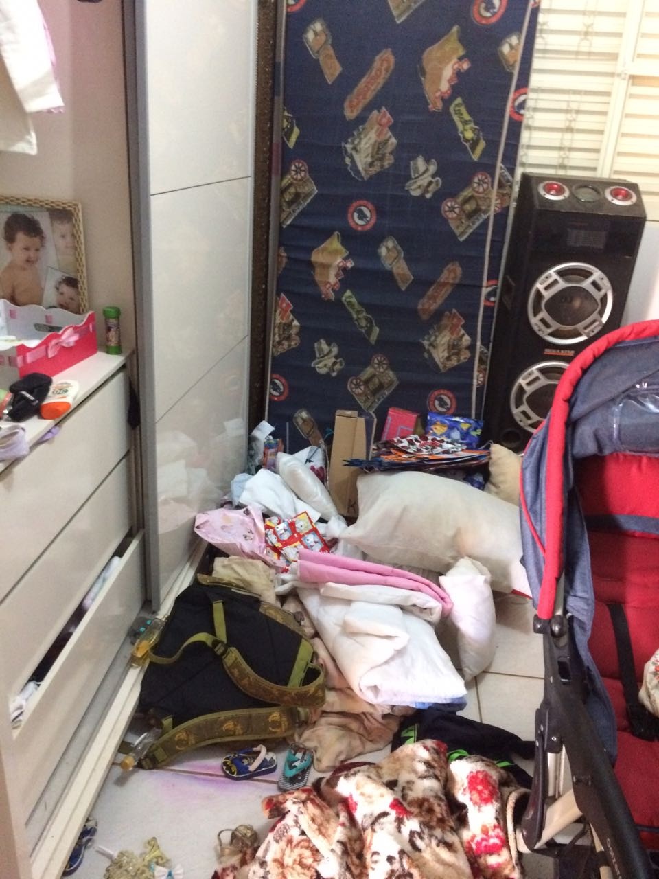 O crime aconteceu no início da tarde, quando um homem, de 35 anos, e sua esposa, de 28, saíram para levar os filhos gêmeos de apenas oito meses ao médico. Além dos bebês, o casal possui um filho de 9 anos. Ao voltar para a casa, na Rua Projetada A, por volta das 14h30, eles encontraram o local totalmente bagunçado e faltando alguns objetos.