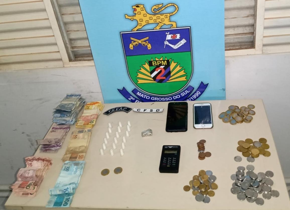 Uma equipe de rádio patrulhamento realizou apoio, e em entrevista, a feminina confessou que o casal vendia drogas no sistema “disk drogas”. Confessou ainda que em sua residência, localizada na Rua 15 de Junho, havia mais entorpecentes.