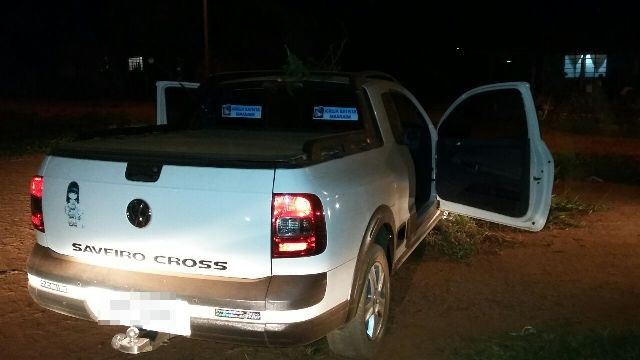 Os assaltantes reviraram a casa e roubaram um aparelho televisor, dinheiro, cartões bancários com senha e fugiram do local do crime na picape VW/Saveiro do casal, seguindo em direção à estrada boiadeira.