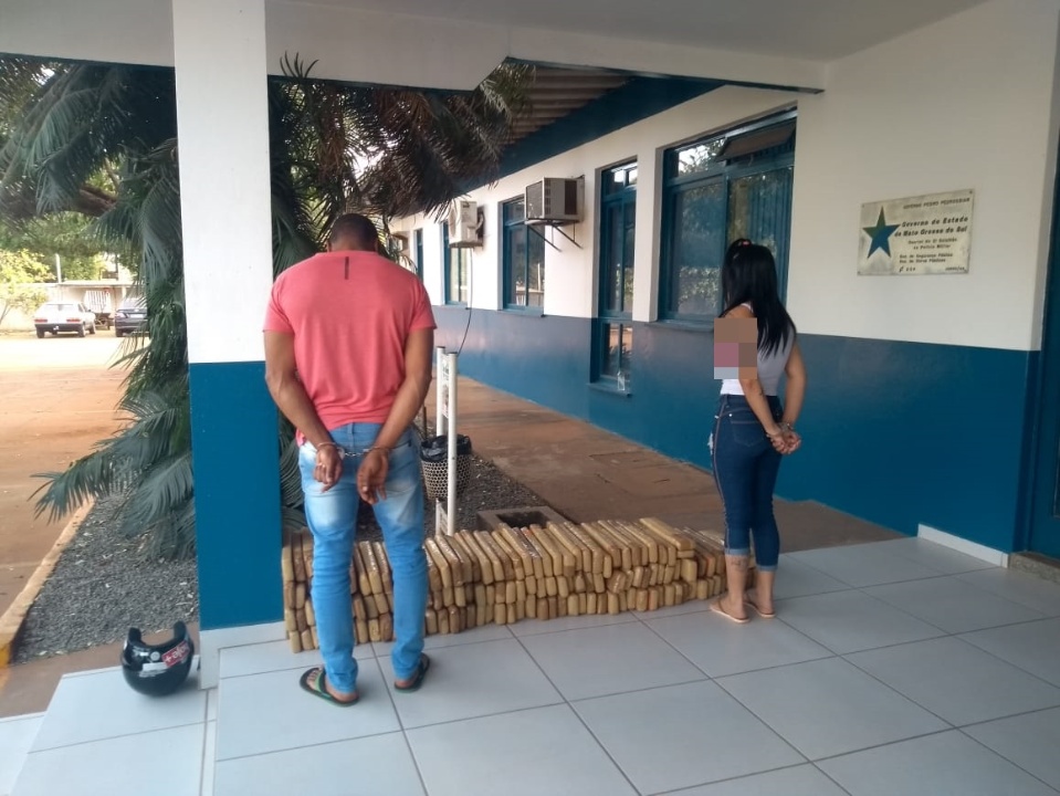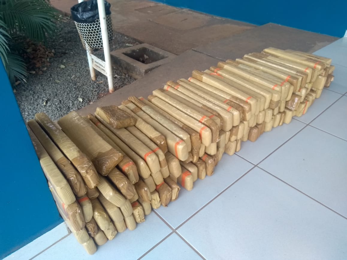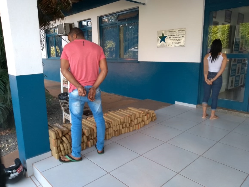 Um casal foi preso em flagrante na tarde desta quinta-feira (12) por tráfico de drogas. Em um veículo com placas de Toledo (PR), eles transportavam 153,5 kg de maconha, divididos em 138 tabletes. Segundo a autora, ela e o homem moram juntos há seis meses. Ela alegou não saber o que o marido “faz da vida”, mas admitiu saber do entorpecente no veículo.