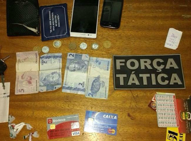 Os policiais negaram e informaram que na carteira do acusado havia apenas R$ 11 em cédulas e dinheiro. Além da droga, foram apreendidos com o casal, dois celulares.