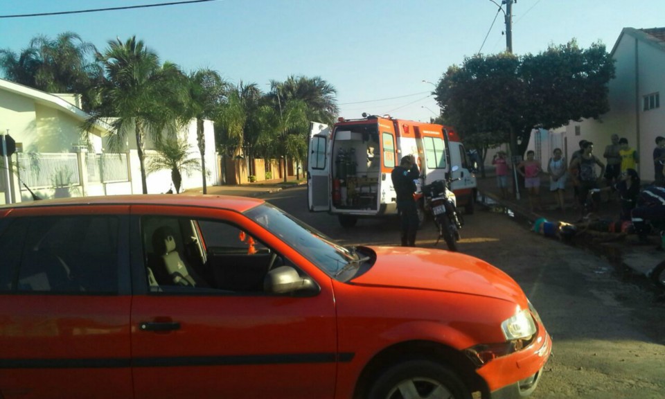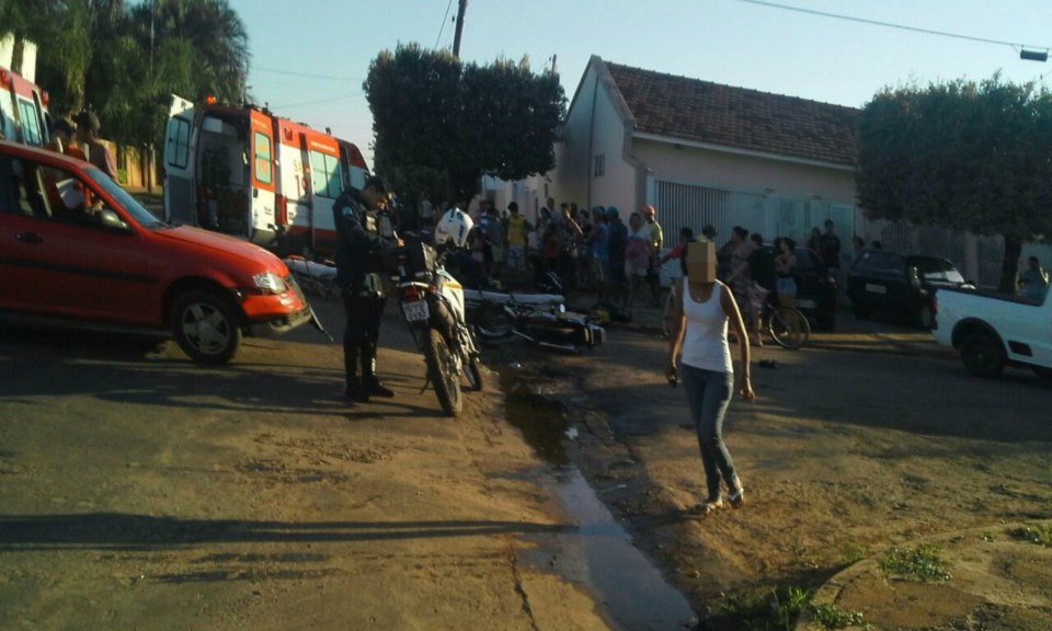 Com o impacto da colisão o condutor da motocicleta e a jovem que se encontrava na garupa vieram ao solo.