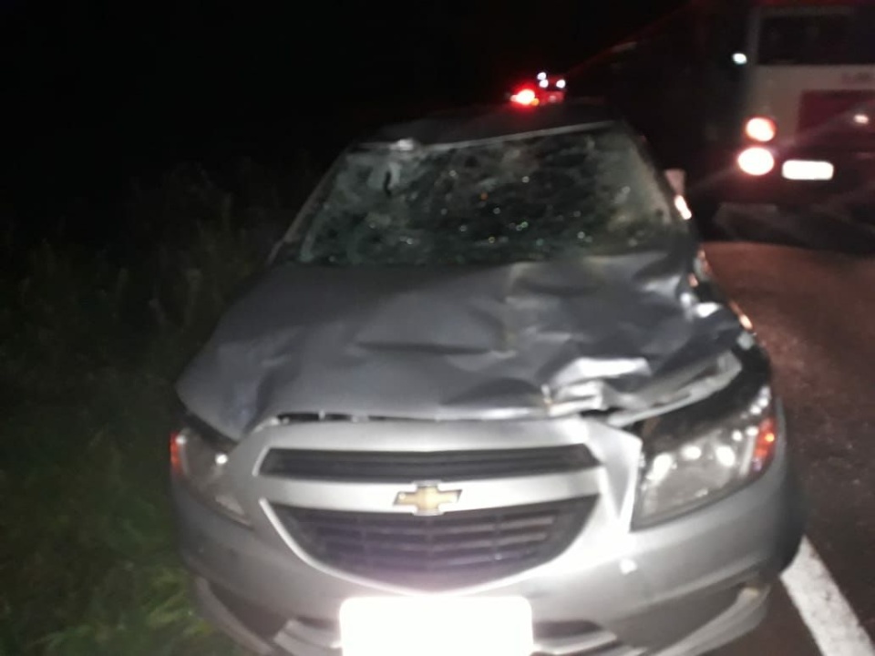 Um cavalo solto na pista foi a causa de um acidente na BR-262 na noite desta quinta-feira (25) em Três Lagoas. O animal atravessava a rodovia quando foi atingido pelo motorista de um carro de passeio que seguia em direção à área central da cidade.