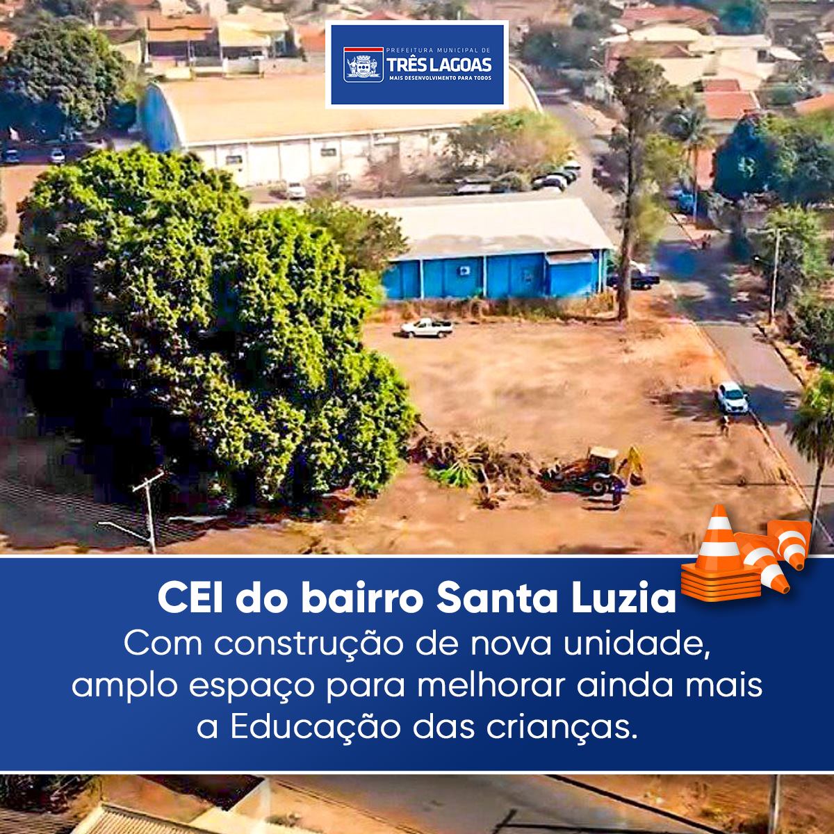 Com recursos próprios, a Prefeitura de Três Lagoas vai realizar a construção de uma nova unidade do Centro Educacional Infantil (CEI) do bairro Santa Luzia. A nova escola será construída na área localizada ao lado do Almoxarifado Municipal.