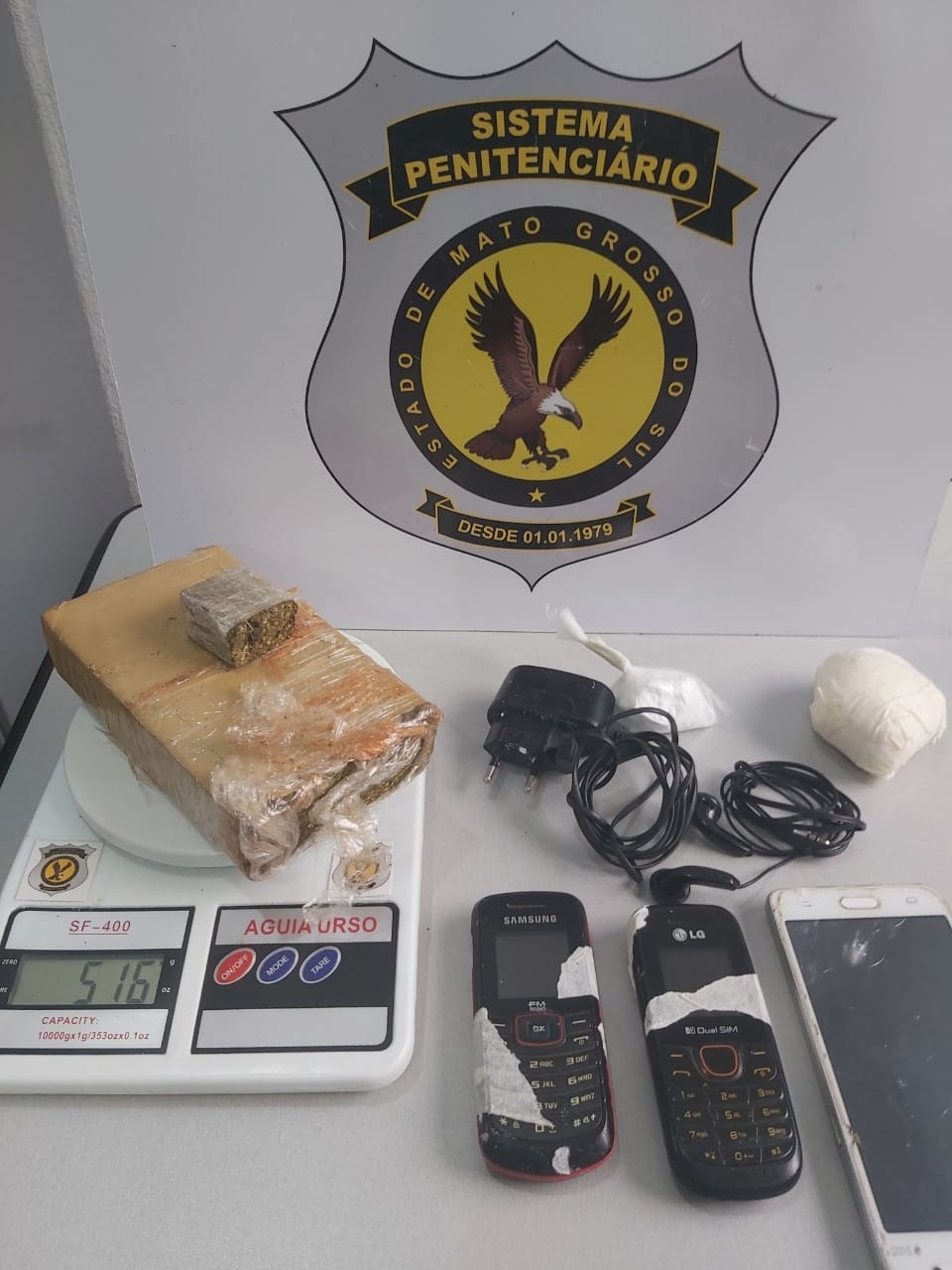 TRÊS LAGOAS: Três celulares, um carregador, um fone de ouvido, dois invólucros de cocaína (505 gramas) e duas porções de maconha que pesaram cerca de 505 gramas foram apreendidos na manhã desta quarta-feira (03) no Presídio de Segurança Média de Três Lagoas.