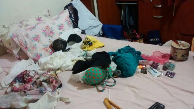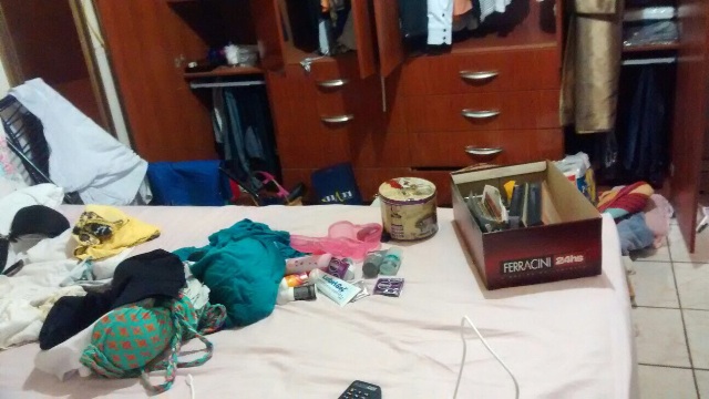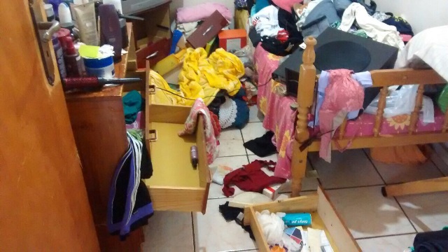 Na cena do crime os policiais verificaram que para entrar na residência o jovem escalou o muro e arrombou a janela dos fundos, conseguindo invadir a casa, que foi completamente revirada.