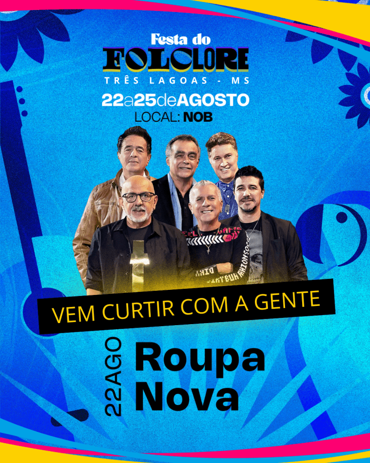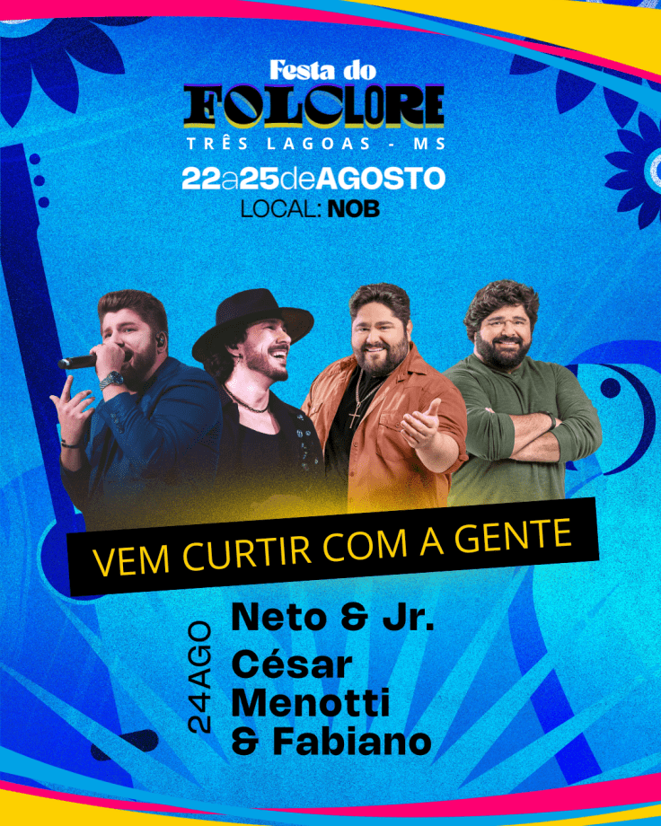 Sim, é amanhã! Um “Quintou” que vai dar gosto de viver, pois quintou com gostinho de 34ª Festa do Folclore de Três Lagoas que está com uma super-infraestrutura aguardado toda a população e região para quatro noites de muita cultura, comidas típicas e música boa, mais um delicioso almoço de domingo. Tudo isso na Esplanada NOB, no centro da cidade, de 22 a 25 de agosto.