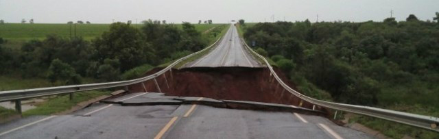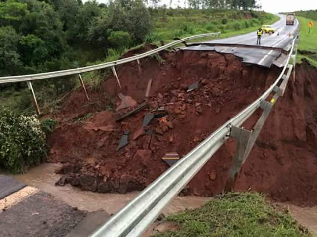 As chuvas continuam castigando as cidades do sul do Estado e causando prejuízos. Dessa vez o problema é interdição da BR-163 próximo de Eldorado, distante 440 quilômetros da Capital, depois de desmoronamento de parte da rodovia.