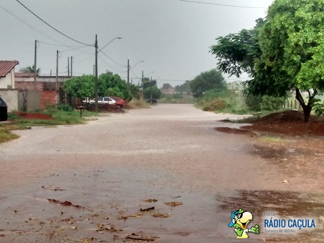 Em outro ponto, no Bairro Jardim das Acácias, a polícia não pode atender uma ocorrência porque não conseguiu driblar o volume de água provocado pela chuva desta tarde (22)