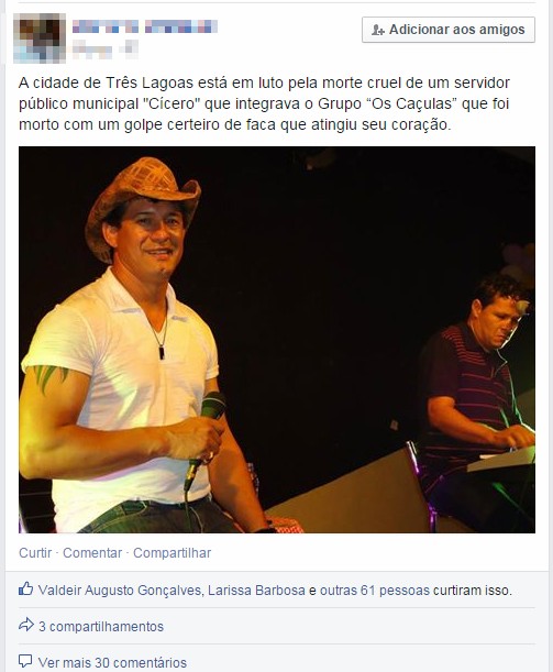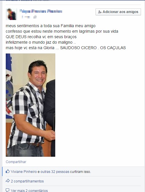 Os amigos de Cícero prestam homenagens nas redes sociais ao tão querido morador de Três Lagoas.