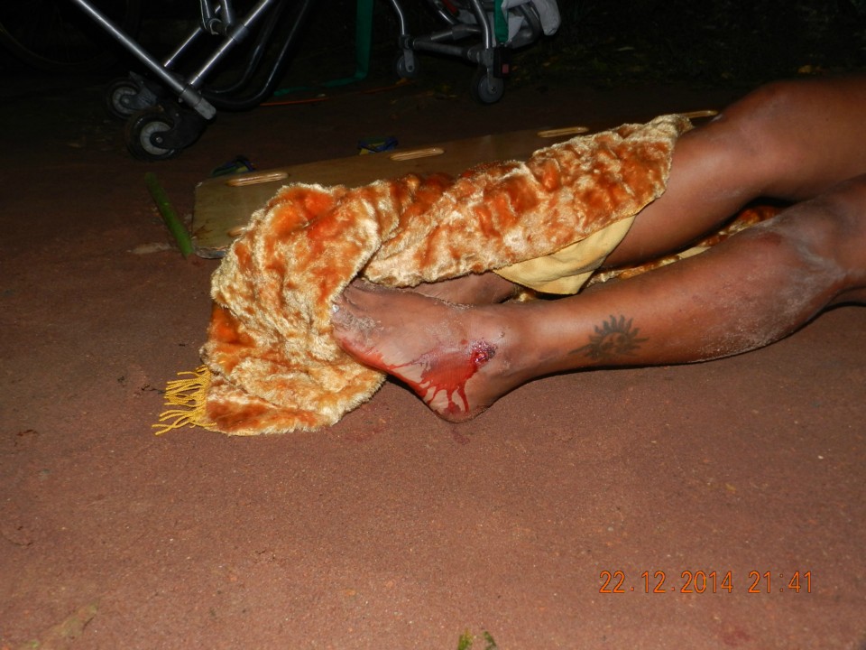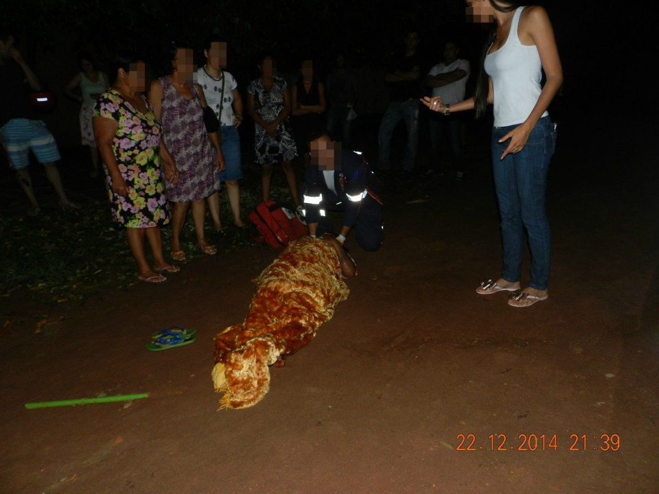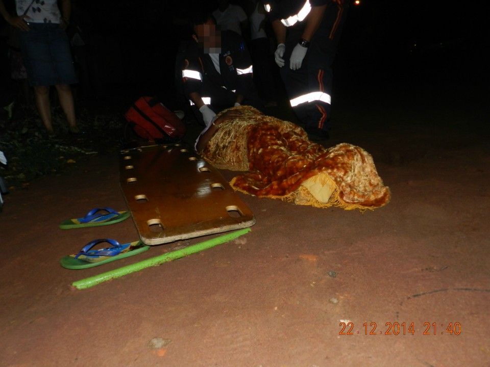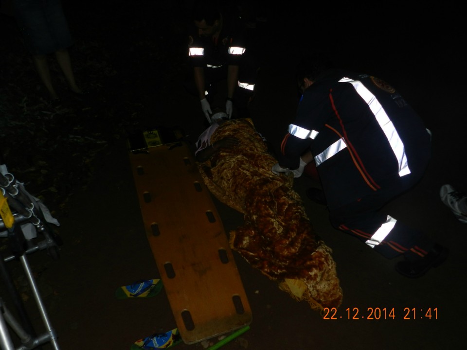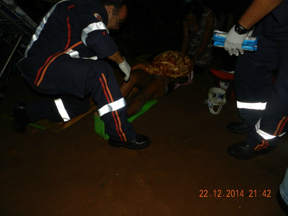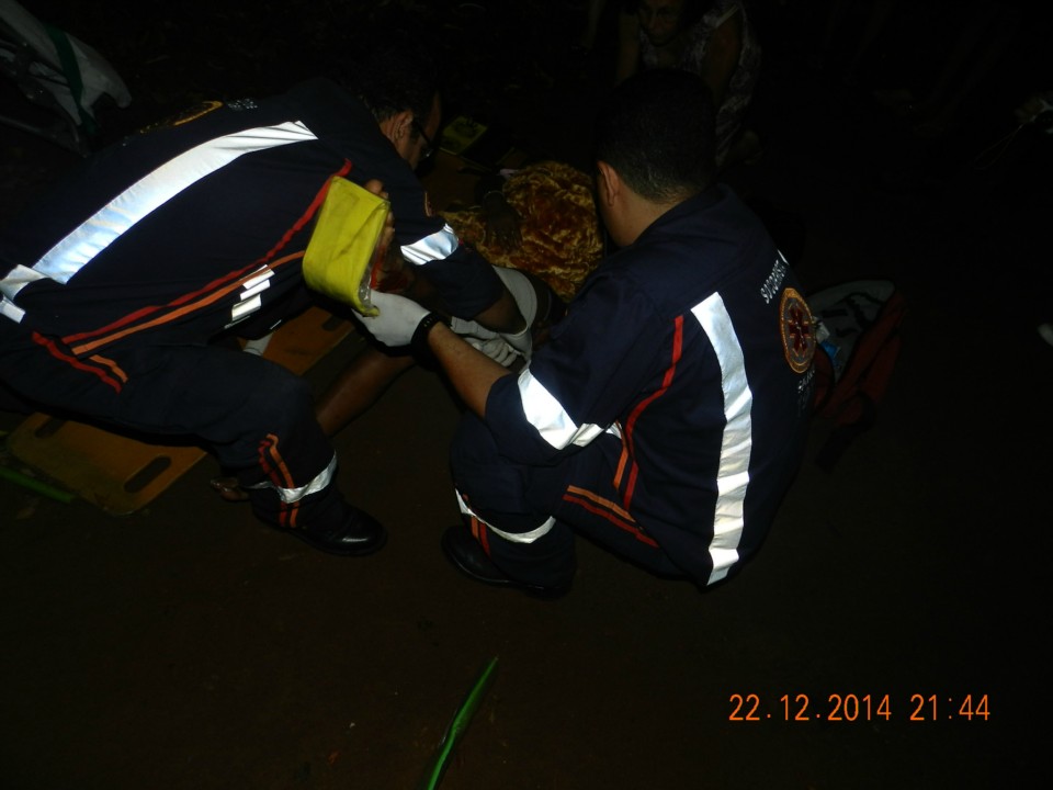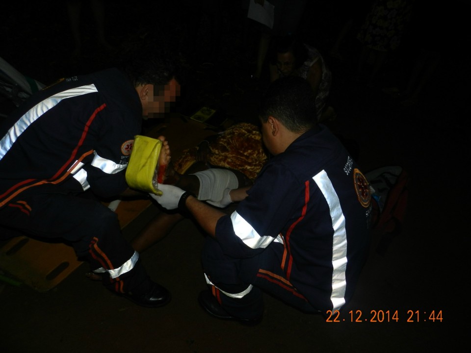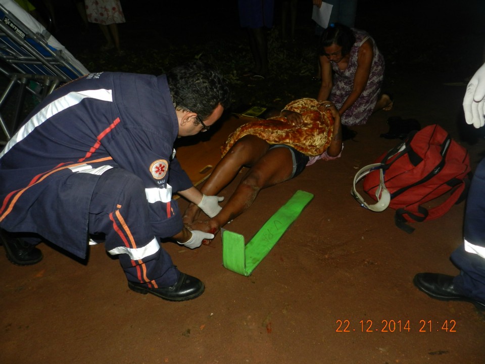 O SAMU (Serviço de Atendimento Móvel de Urgência) foi solicitado ao local a encaminhando ao Hospital Auxiliadora com suspeita de fratura no tornozelo e escoriações no joelho esquerdo.