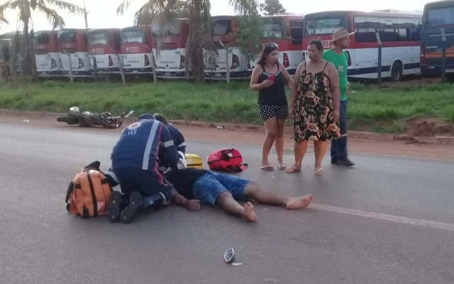 Um acidente de trânsito na Avenida Ranulpho Marques Leal deixou duas pessoas feridas na tarde de ontem (12), em Três Lagoas. Um ciclista tentou atravessar a avenida e foi atingido em cheio por uma motocicleta.