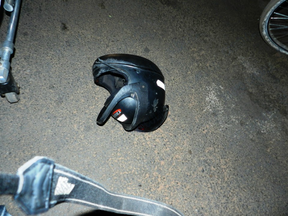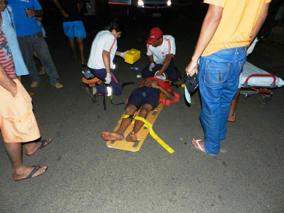 Em dado momento, o garoto perdeu o controle da moto vindo a atropelar um ciclista que trafegava na via. A força do impacto foi tão grande que a vítima ficou praticamente desacordada.