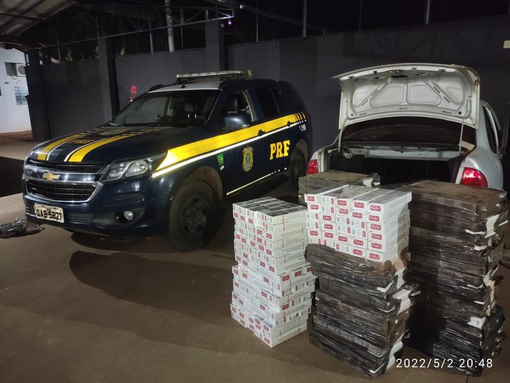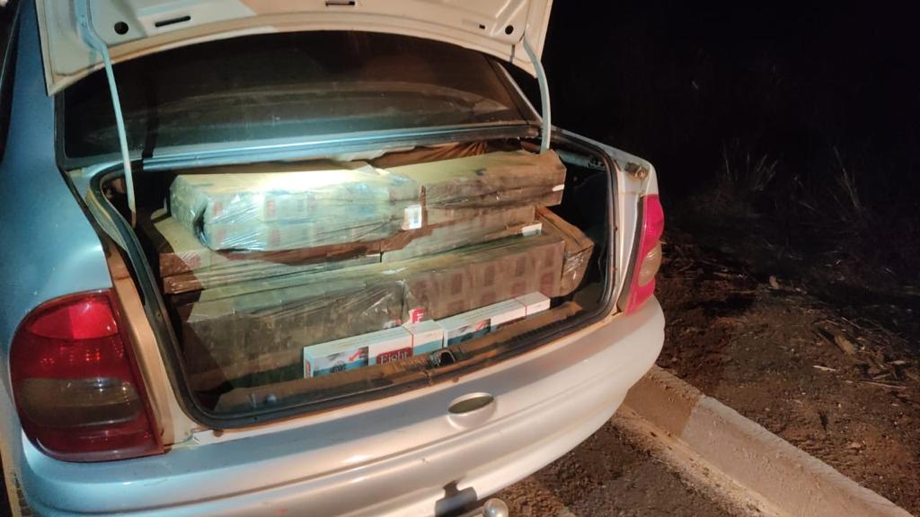 Na primeira ação, um veículo Corsa foi abordado, aqui em Três Lagoas, e em durante entrevista ao motorista, a equipe da PRF desconfiou da versão que foi dada pelo suspeito e da passageira que estava com ele, sendo realizada uma busca no veículo, encontrando no porta-malas oito caixas de cigarros, com 3.800 maços ao todo.