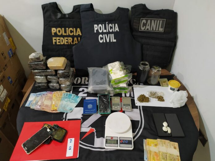 SIG de Três Lagoas, em conjunto com a Polícia Civil de Andradina apreenderam drogas, dinheiro, aparelhos celulares e um veículo furtado.