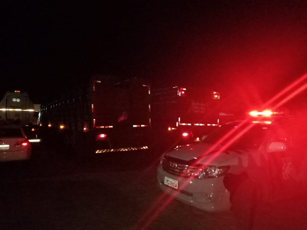 Segundo as primeiras informações apuradas pela Polícia Militar, um veículo Onix e dois caminhões estavam sendo usados na ação