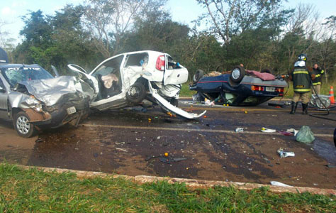 Cinco pessoas, incluindo-se dois adolescentes, continuam internadas no pronto socorro da Santa Casa de Campo Grande. Uma está no centro cirúrgico e deve ser operada na tarde desta segunda-feira. A colisão envolveu três carros por volta das 7h20 de hoje na BR-163, perto do distrito de Anhanduí, e causou a morte de um casal e uma menina de cinco anos.