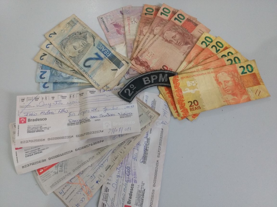Uma equipe da Polícia Militar realizava o patrulhamento pela região da NOB e quando percebeu a presença dos oficiais, o acusado abandonou o dinheiro, os cheques e o computador e fugiu do local.