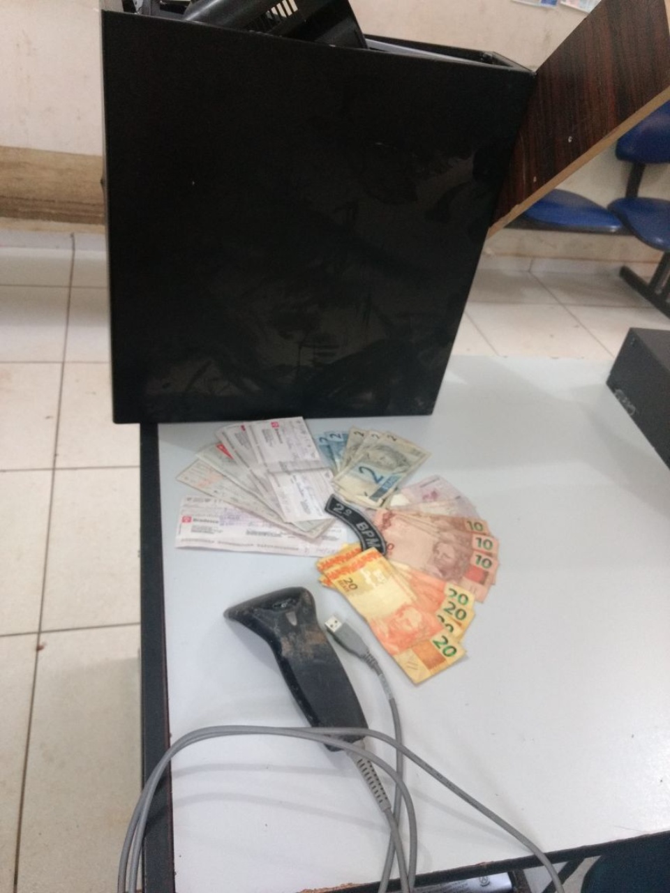 De acordo com informações oficiais, o bandido entrou na loja, pegou o dinheiro e os cheques que estava no caixa da loja, ele também carregou um computador e fugiu do local.