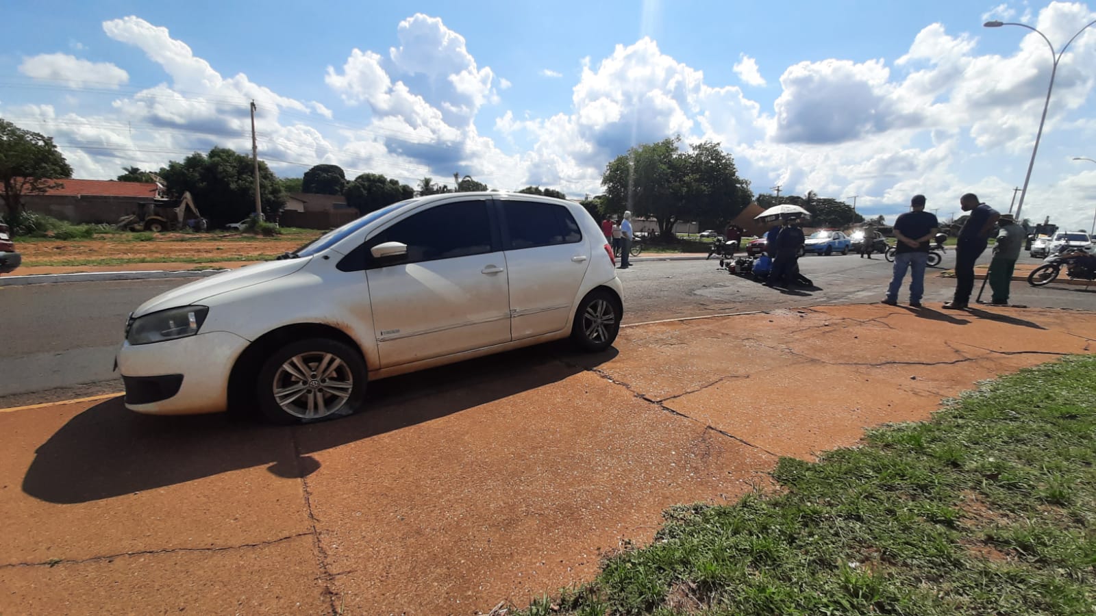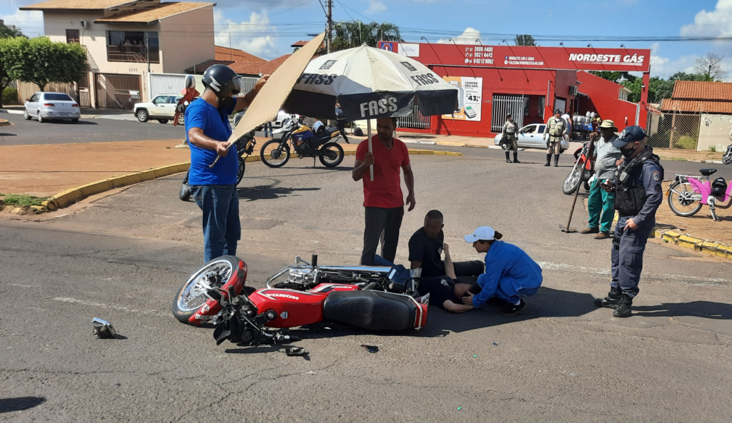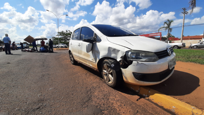 TRÊS LAGOAS (MS) – Na tarde desta sexta (07), um acidente de trânsito foi registrado, onde um carro Fox Trend branco acabou por colidir com uma moto CG 125 Vermelha, próximo ao cruzamento com a Rua Marcílio Dias, danificando o veículo e levando os condutores, um casal, ao solo. Ambos ficaram feridos na cabeça.