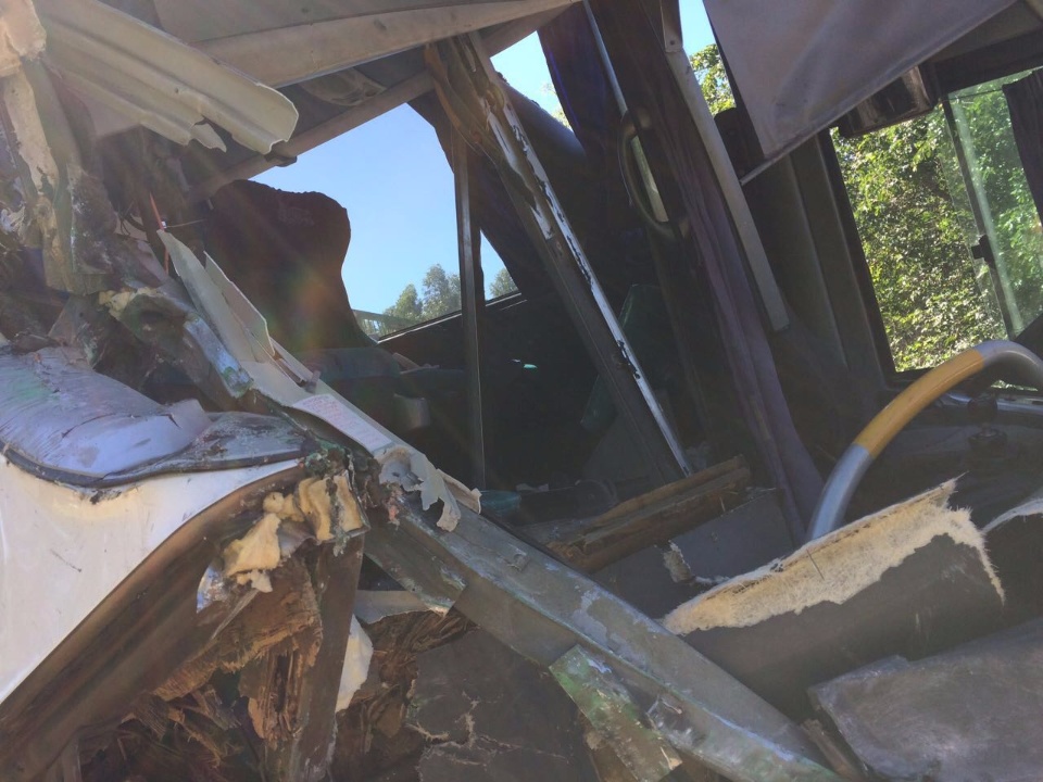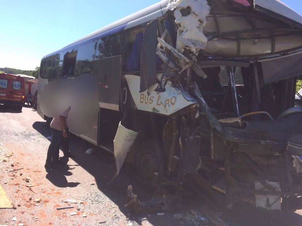 De acordo com relatos de testemunhas, o motorista do ônibus colidiu contra a traseira de uma carreta, carregada de eucalipto.