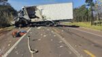 Colisão frontal entre caminhão-baú e carreta de calcário mata duas pessoas na BR 262