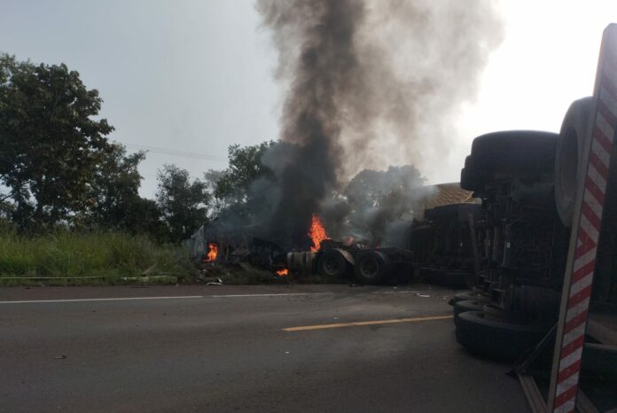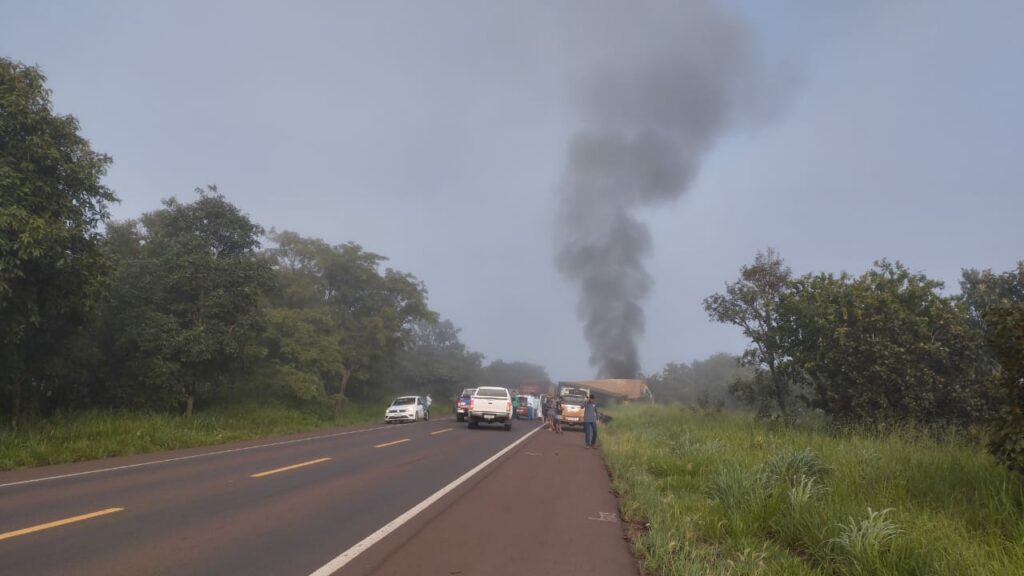 Colisão frontal entre carretas interdita BR 262 entre Água Clara e Ribas