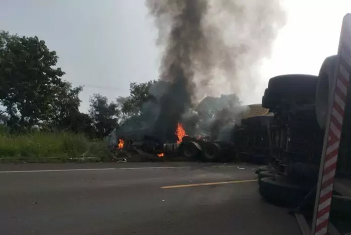 De acordo com informações da Polícia Rodoviária Federal, o acidente aconteceu por volta das 7h, no km 160 da rodovia, e envolveu uma colisão frontal entre duas carretas. O impacto deixou duas pessoas gravemente feridas.