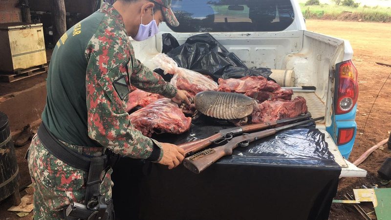 De acordo com a PMA (Polícia Militar Ambiental), após denúncias, dois homens, que prestavam serviços há 30 dias para o fazendeiro, encontraram a caça armazenada. Eles abateram um cateto, cutia, tatu-galinha. Após atirar nos animais, eles os cortaram em pedaços.
