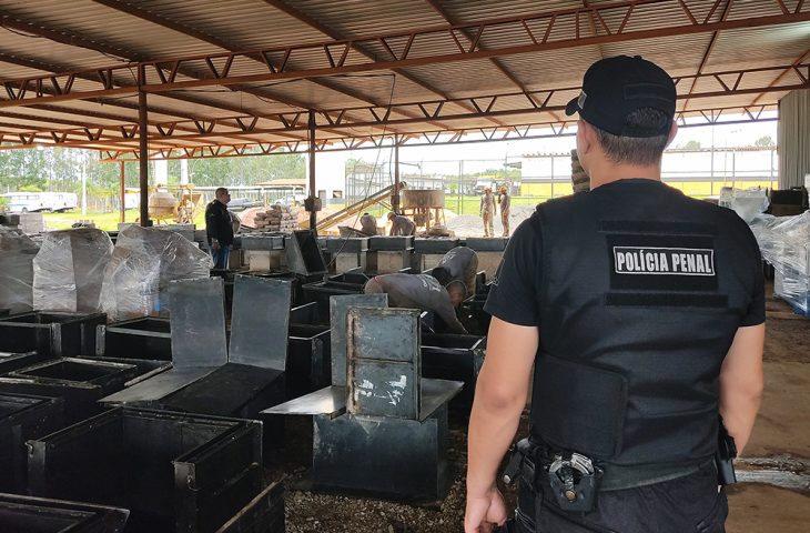 Na oficina de churrasqueiras – com a confecção completa feita no local -, a última ser implantada há dois meses, atuam 20 custodiados, com uma produção média de 15 peças completas por dia. “Entra a matéria-prima e já sai pronta para o comércio”, comenta Márcio Roberto Rosa, proprietário da Fort Churrasqueiras.