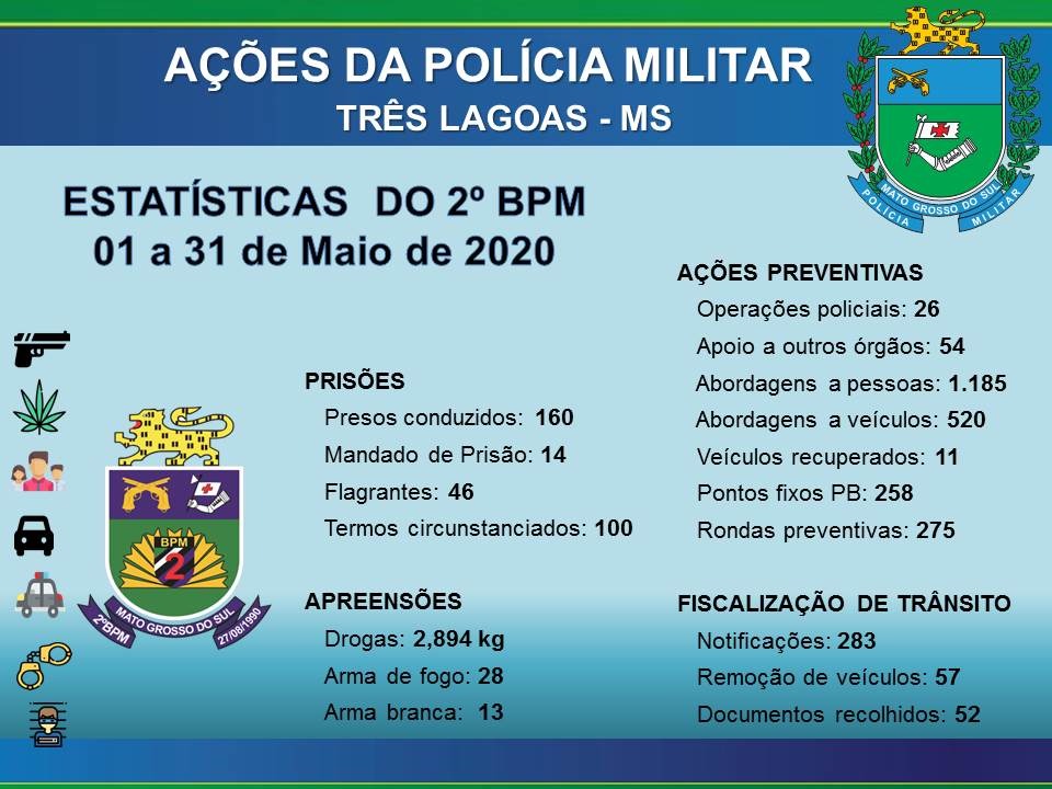 Embora tenha ficado apenas três meses à frente do CPA 2, o Coronel Nivaldo de Pádua Mello despede-se de Três Lagoas (MS) com sentimento de dever cumprido e de amizades fortalecidas e, especialmente trabalhos realizados como: 26 operações policias e mais de 160 prisões apenas no mês de maio de 2020.