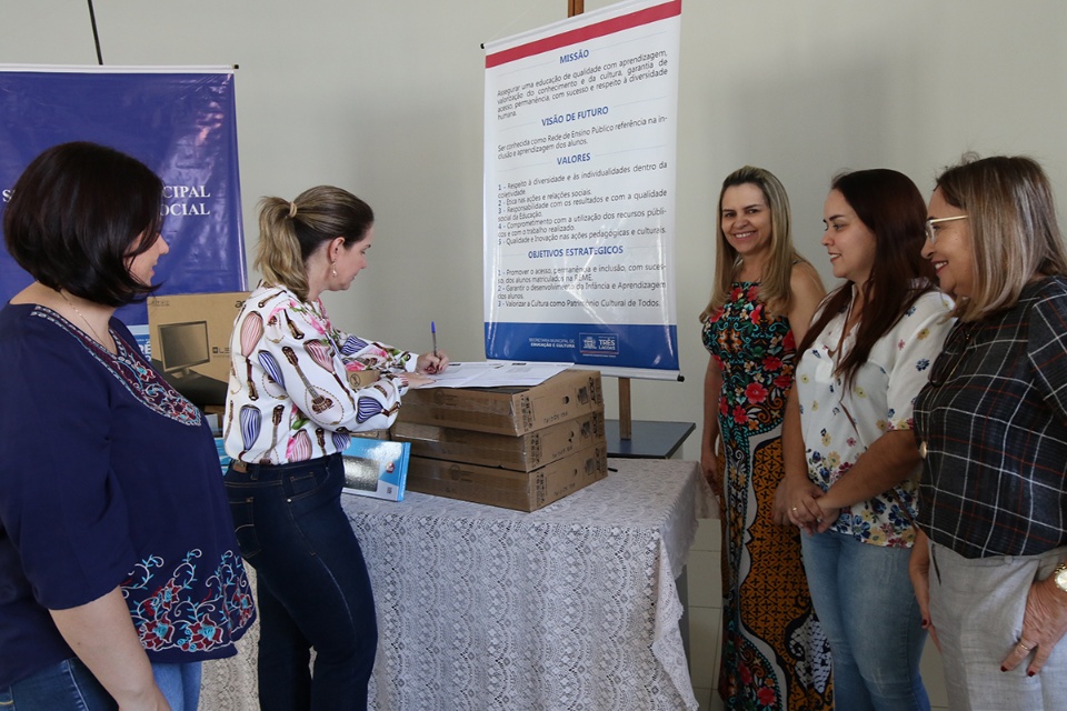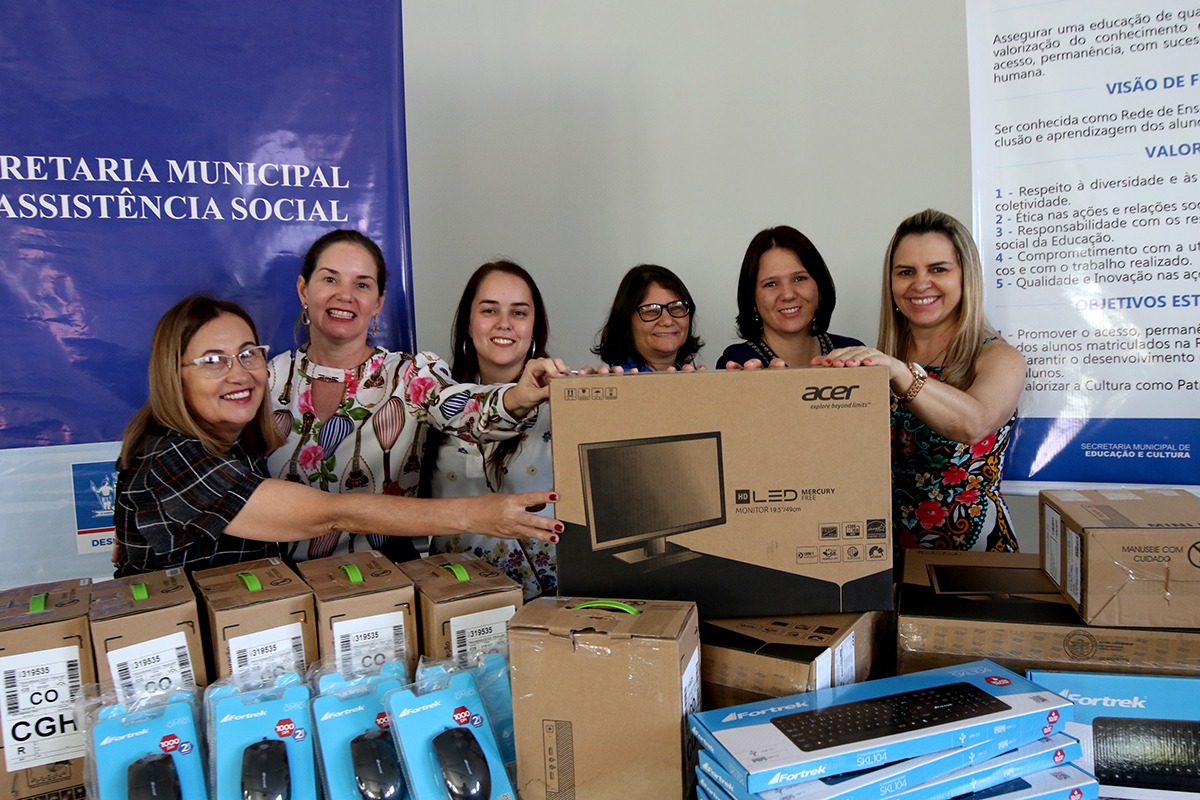 Os computadores, formalmente recebidos pela chefe de Gabinete da Secretária de Educação, Neuza Inácio da Silva, serão usados nas unidades da Rede Municipal de Ensino (REME) para controle da frequência escolar dos alunos, filhos das famílias que recebem o benefício do Bolsa Família.
