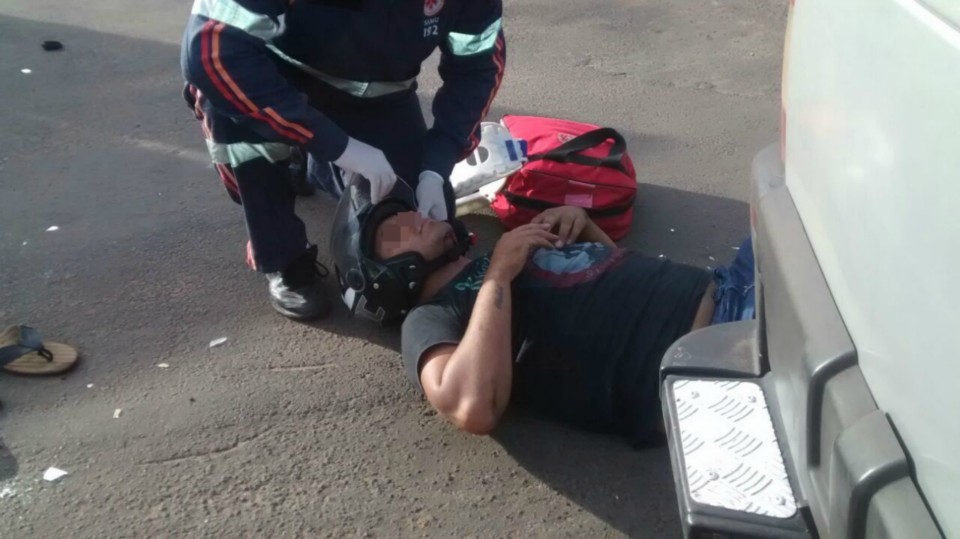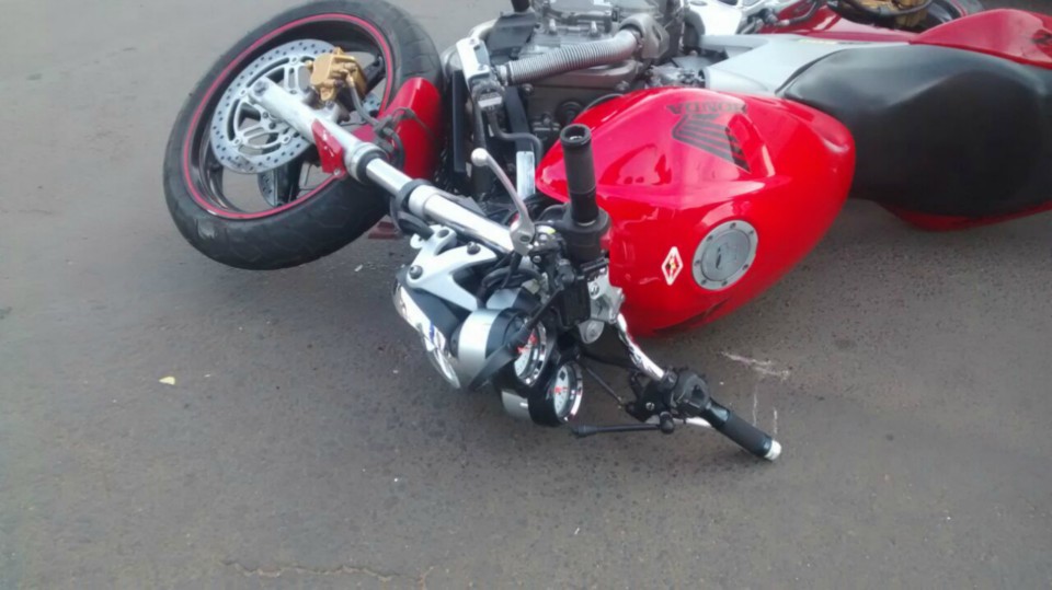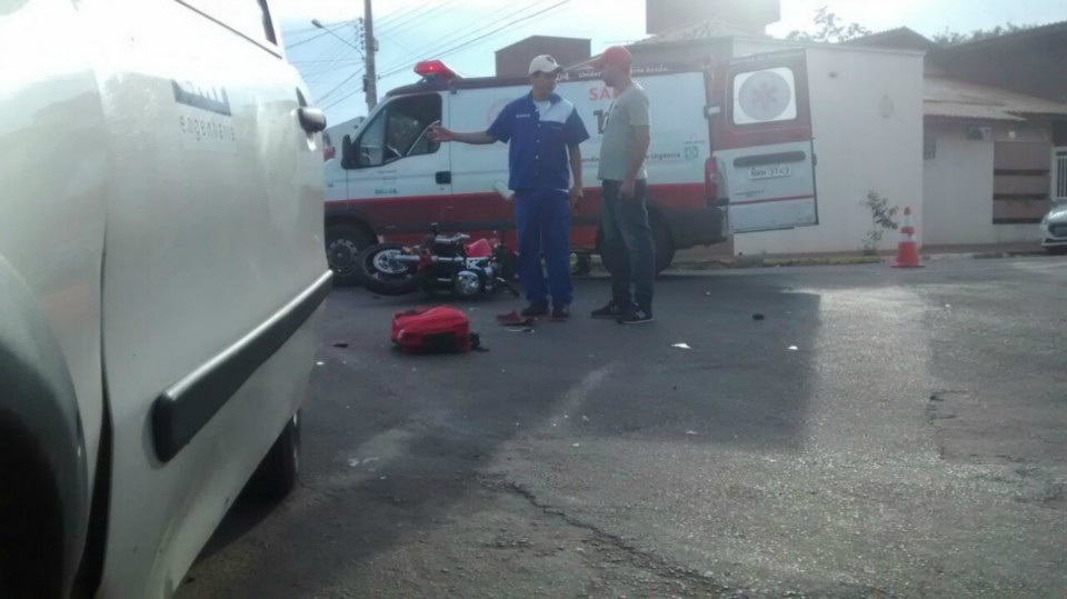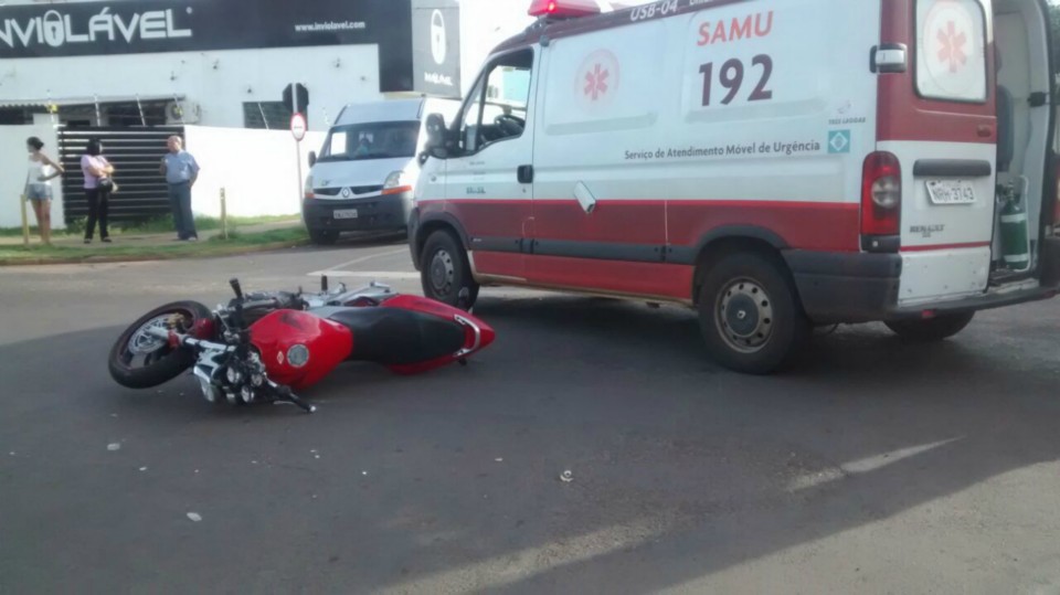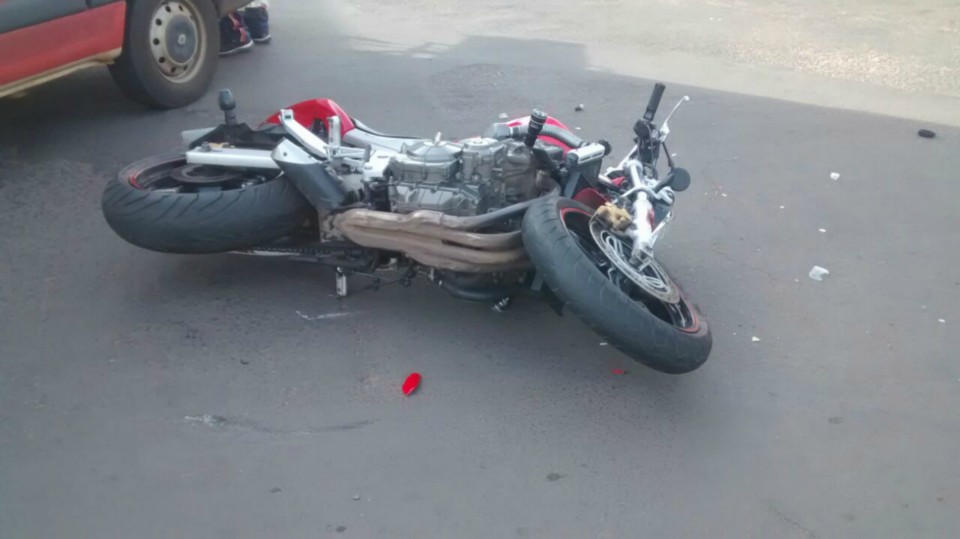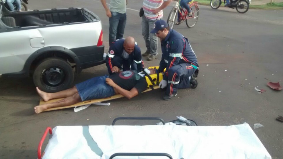 Segundo informações M.P. condutor da motocicleta que trafegava na Rua Egídio Thomé teve a preferencial invadida pelo veiculo Strada que seguia na Rua João Carrato. Apesar do motociclista tentar frear não foi possível evitar a colisão batendo na lateral do carro, vindo ao solo.