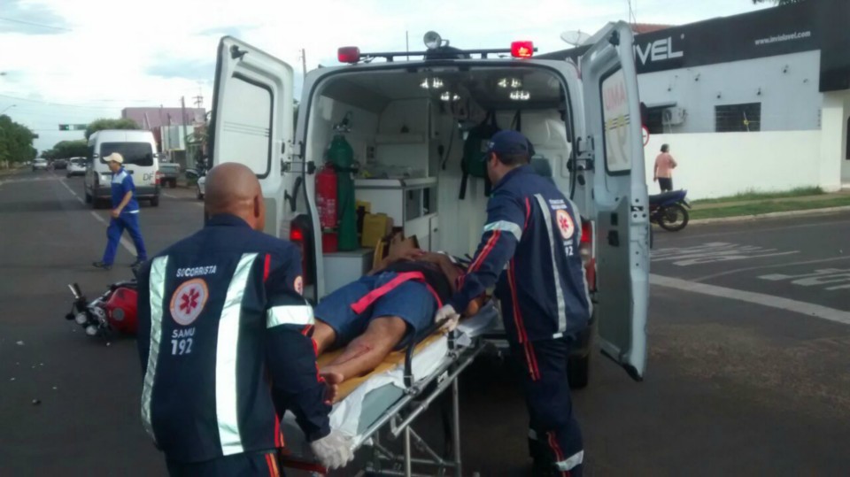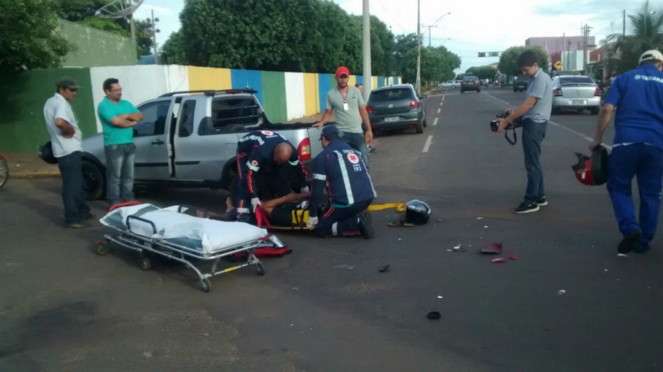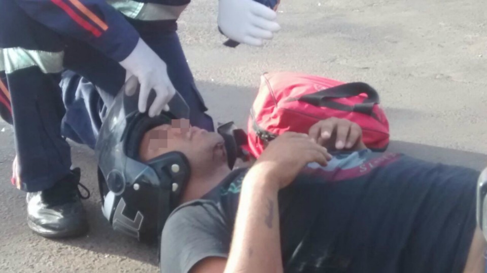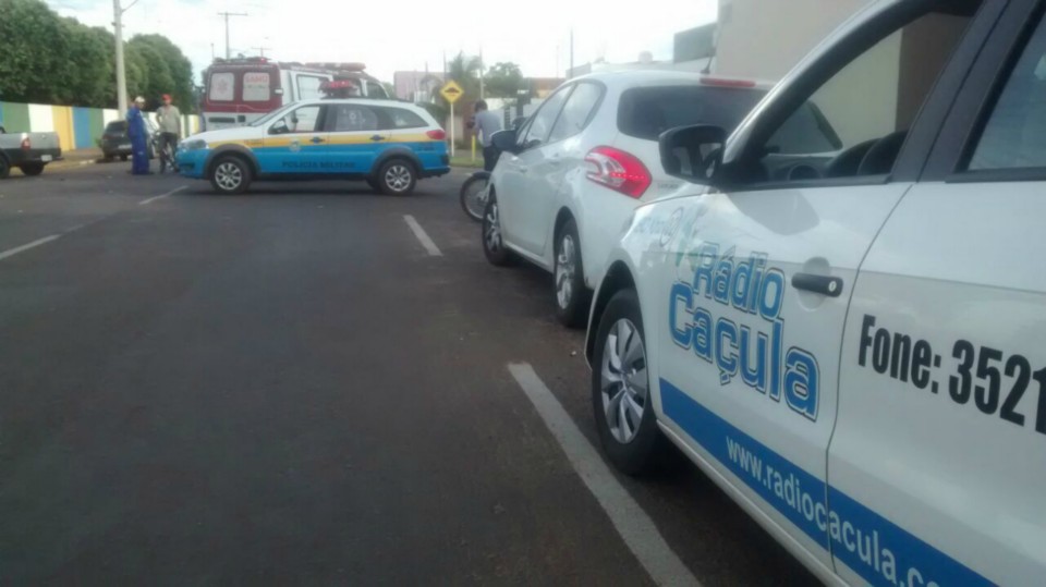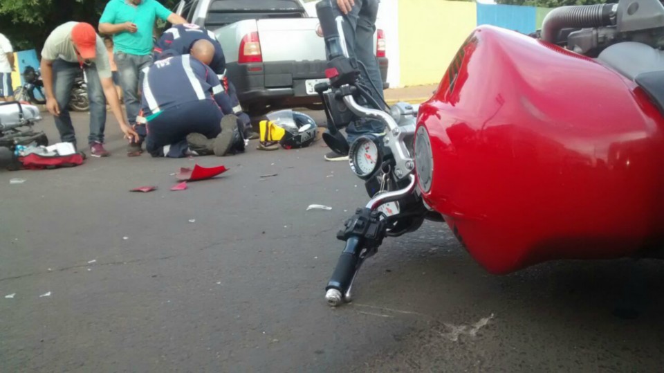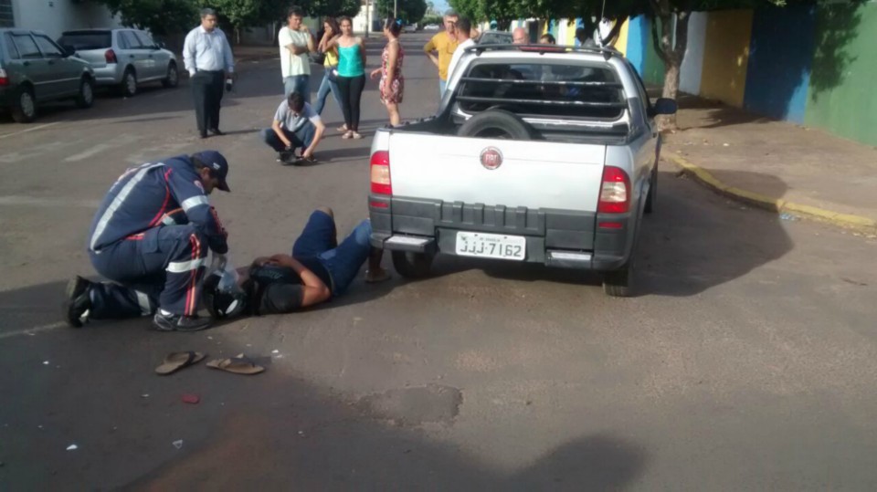 Segundo informações M.P. condutor da motocicleta que trafegava na Rua Egídio Thomé teve a preferencial invadida pelo veiculo Strada que seguia na Rua João Carrato. Apesar do motociclista tentar frear não foi possível evitar a colisão batendo na lateral do carro, vindo ao solo.