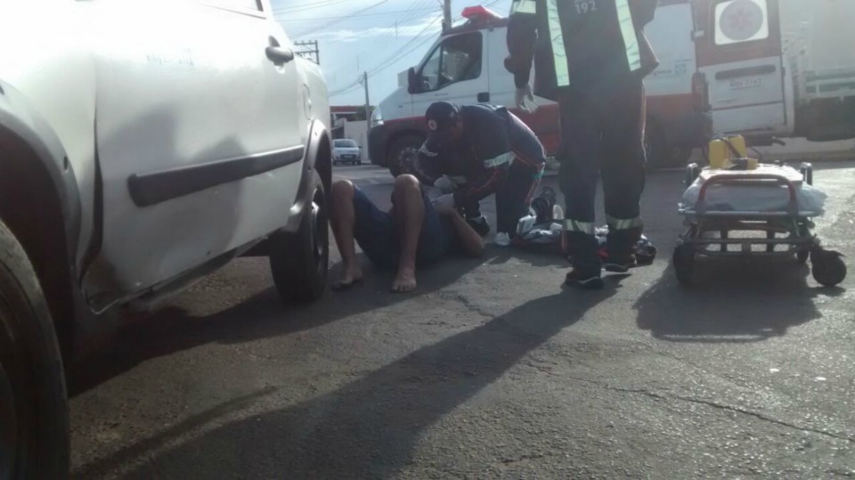 O SAMU (Serviço de Atendimento Móvel de Urgência) foi solicitado ao local encaminhando M.P ao UPA (Unidade de Pronto Atendimento) com diversas escoriações além de cortes com sangramento nas pernas e na altura do queixo, o condutor do carro nada sofreu.