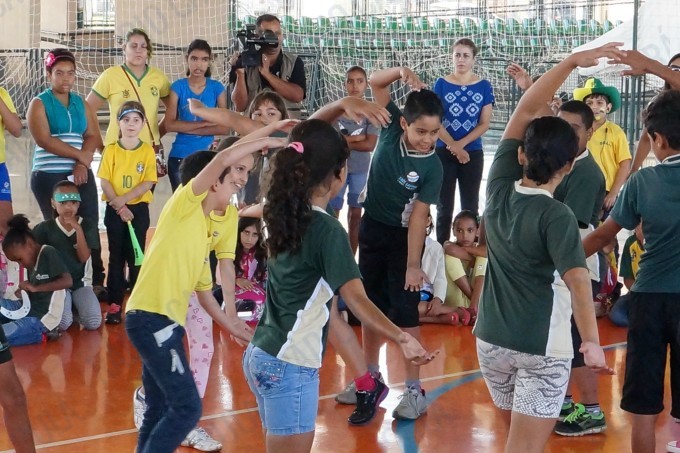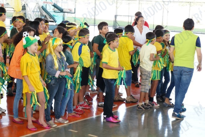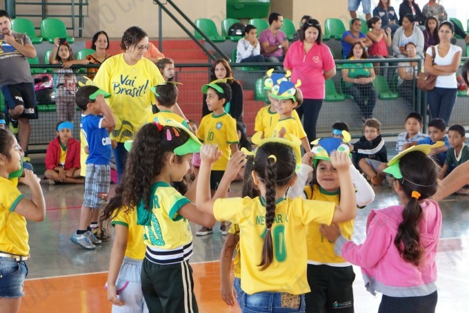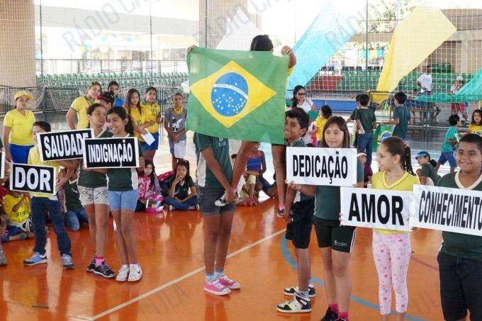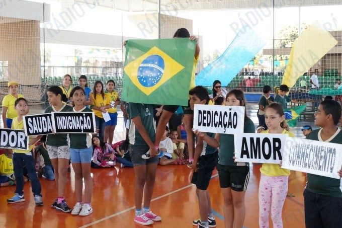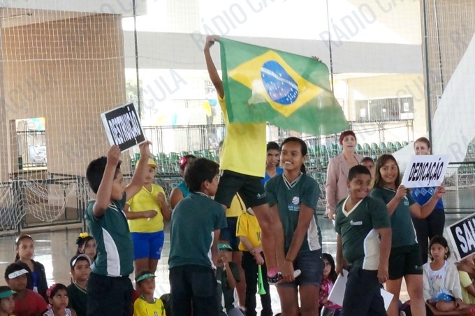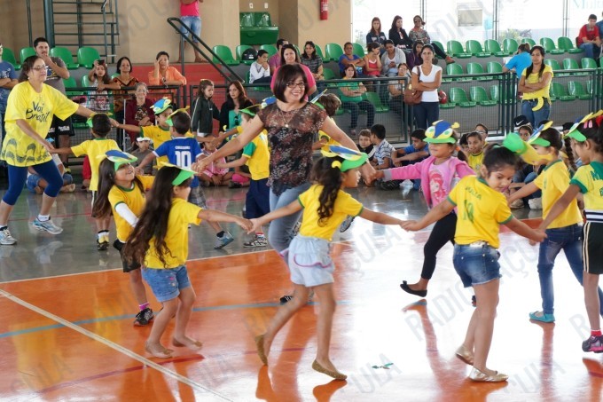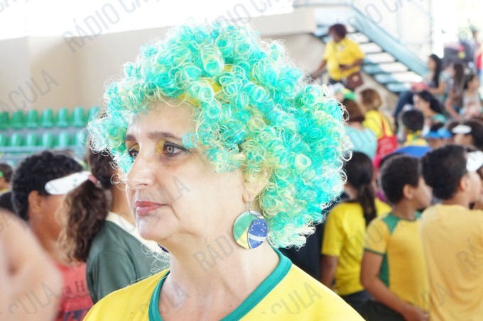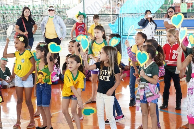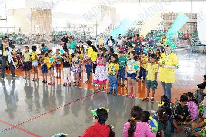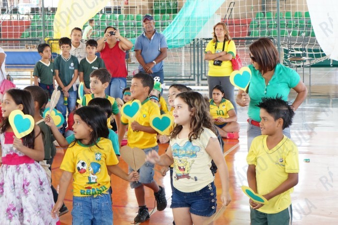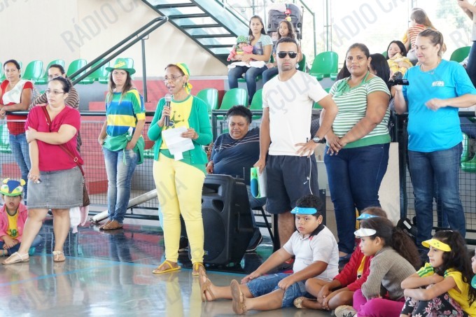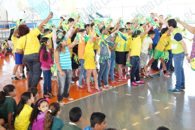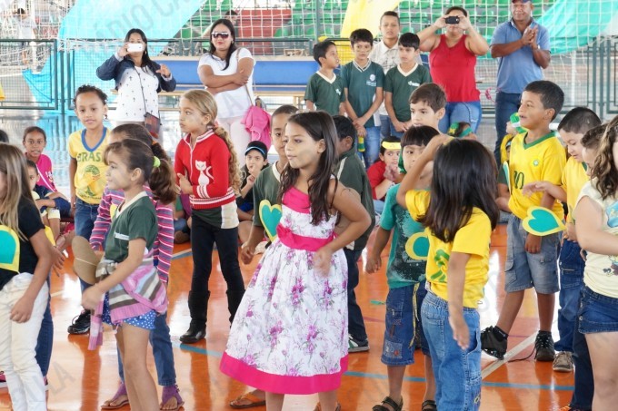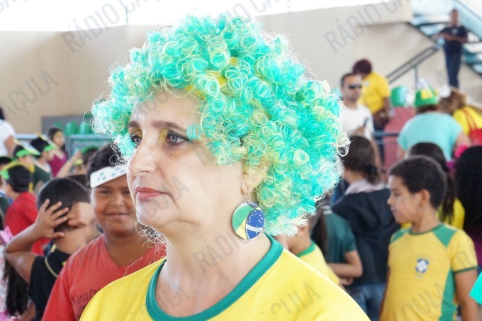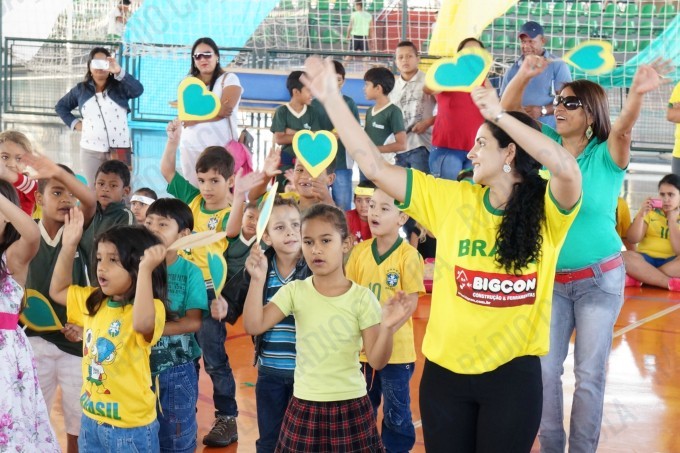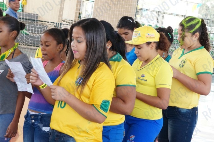Pais, alunos de todas as classes, professores e funcionários da Escola Municipal Flausina de Assunção Marinho estão participando do Projeto Copa do Mundo Rumo ao Hexa, no Ginásio Poliesportivo na Lagoa Maior.