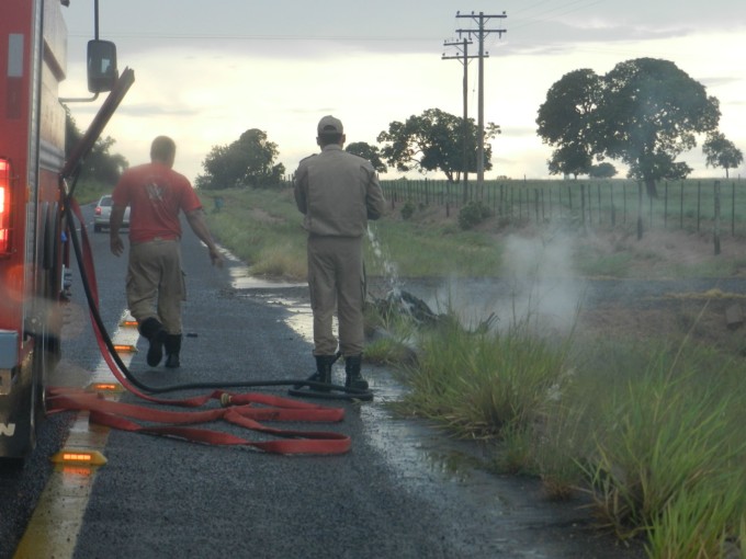 Já na noite de domingo (12), os Bombeiros atenderam um chamado de incêndio em uma motocicleta nas proximidades do Balneário Municipal.