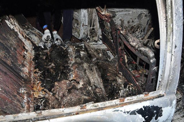 Um dos corpos estava dentro do porta malas, e os outros dois estavam no interior do veículo, um deles em cima do banco traseiro e outro no assoalho do automóvel.