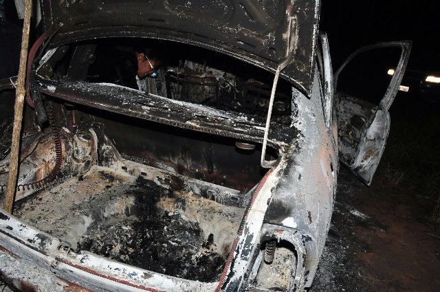 A Patrulha Rural da Polícia Militar de Três Lagoas, através da guarnição comandada pelo Cabo Gabriel e composta pelos soldados Tiego e Junior, localizaram nesta sexta-feira (17), em uma fazenda de eucaliptos localizada na MS-320, um veículo incinerado com três corpos em seu interior.