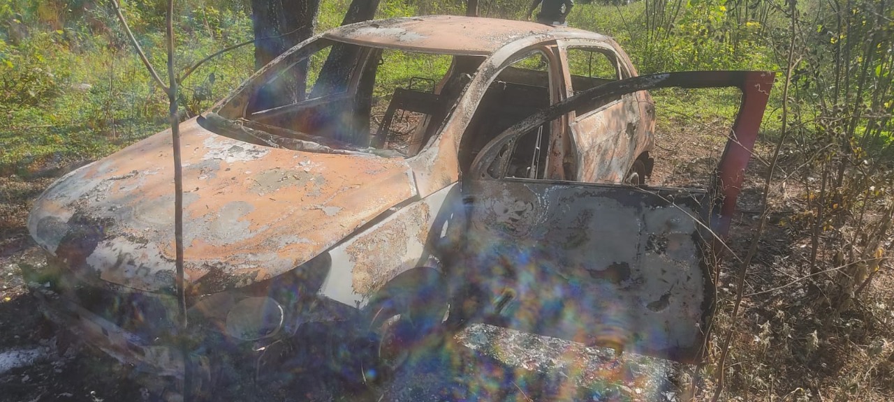 Um morador da região encontrou um veículo queimado próximo de sua residência, acionando a Polícia Militar. Com a placa do veículo, um VW Gol, foi possível identificar o proprietário do carro.