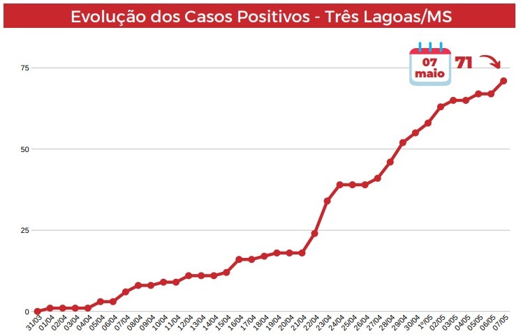 TRÊS LAGOAS (MS) – O setor de Vigilância Epidemiológica da Secretaria Municipal de Saúde fechou o Boletim COVID-19 desta quinta-feira (07), apresentando quatro casos positivo, chegando a 71 pacientes confirmados para a doença.