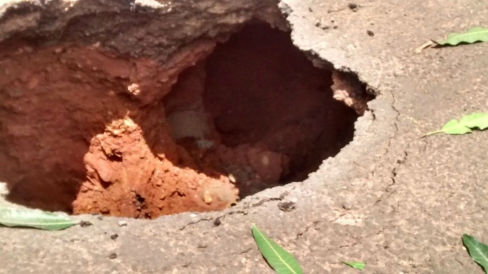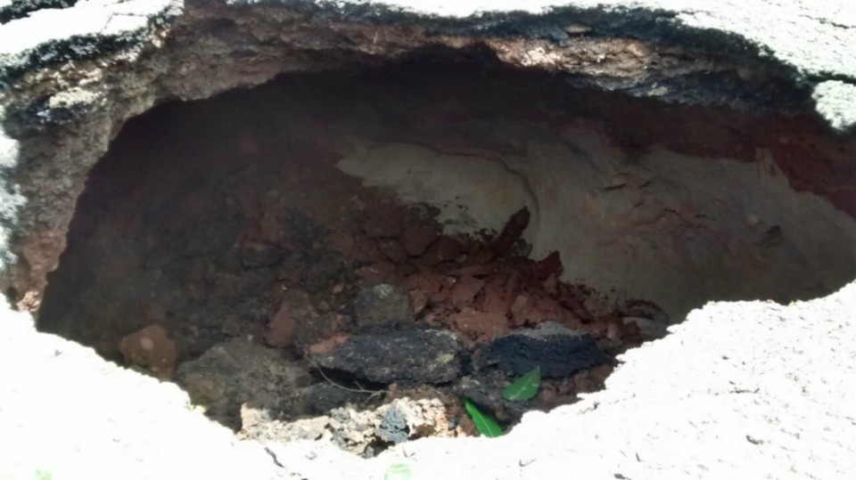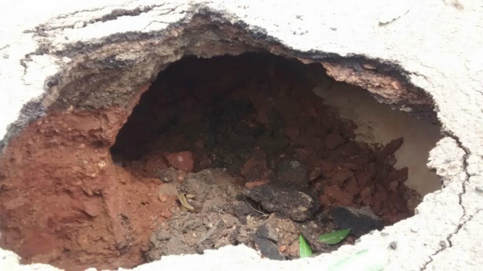 Uma cratera ficou completamente exposta na rua João Mendes no bairro Interlagos próximo a Escola Estadual Edwards Corrêa e chamou atenção de quem passava no local pela profundidade do buraco