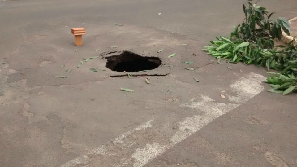 O buraco representa o descaso das ruas da cidade de Três Lagoas que vai de mal a pior.