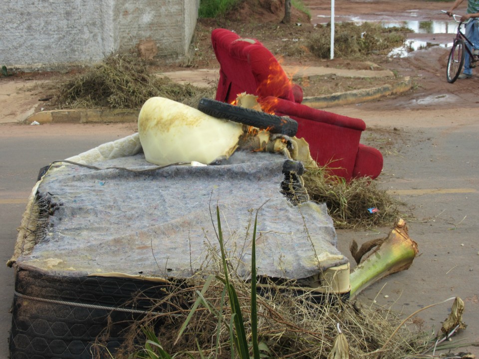 Após os moradores “desabafarem”, eles ainda atearam fogo em um colchão e sofá. A altura da fumaça chamava atenção de quem passava no local.