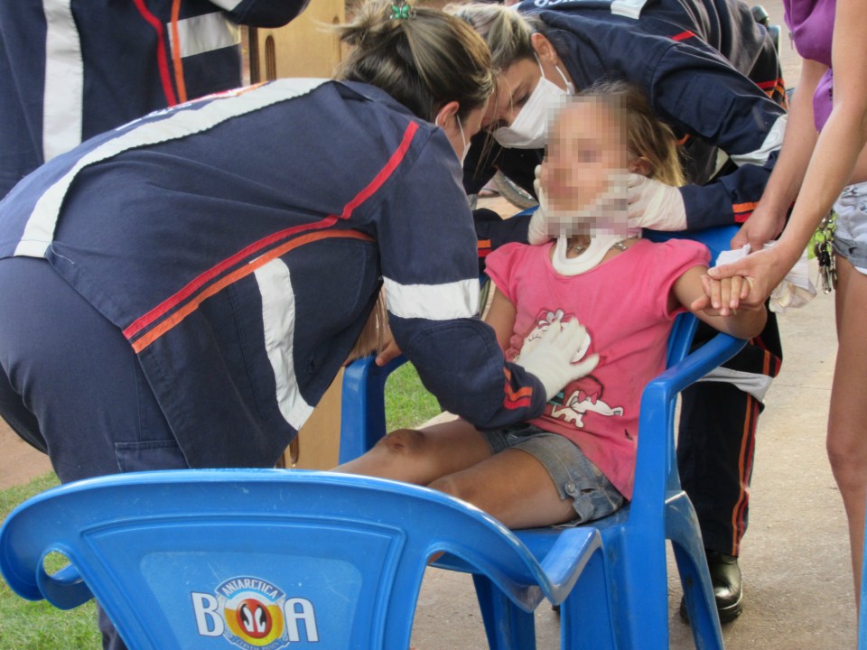 A menina sofreu escoriações pelo corpo e foi socorrida pelo SAMU (Serviço de Atendimento Móvel de Urgência) e encaminhada para a UPA (Unidade de Pronto Atendimento).