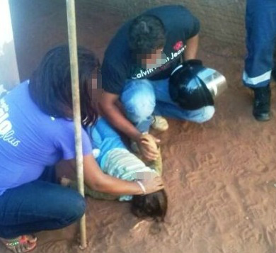 Muito assustado, o garoto recebeu as primeiras ajuda de vizinhos que estavam sob sua guarda, até que a mãe da vítima retornasse de uma consulta médica.