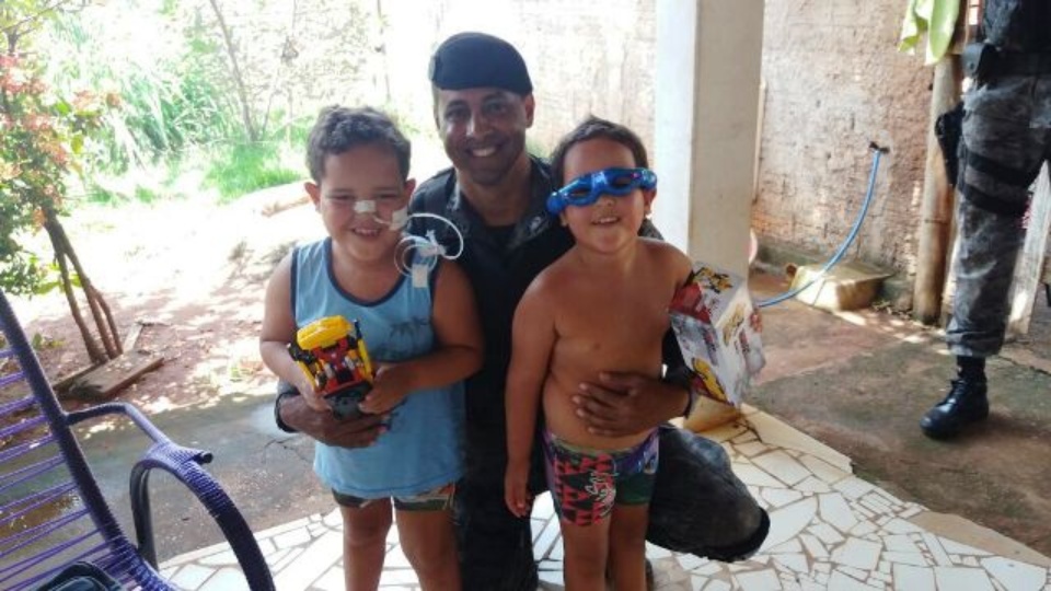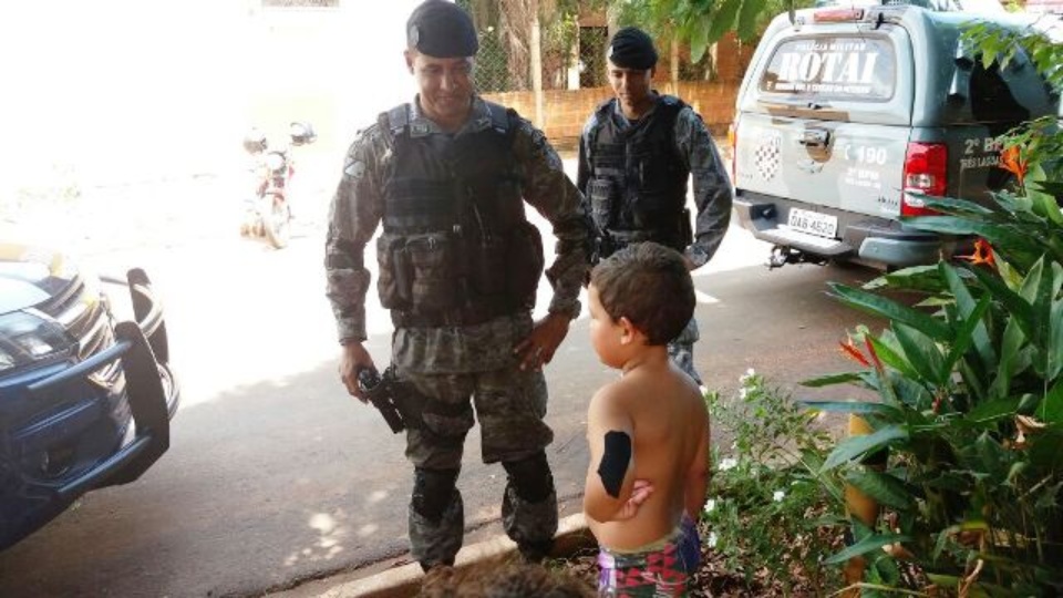 Sabendo do sonho que os meninos tinham em conhecer de perto o trabalho da Polícia Militar, neste sábado (9) uma equipe da Rádio Patrulha e uma da Rotai (Rondas Ostensivas Táticas do Interior) fizeram uma pausa em seu trabalho e foram até a casa da família, localizada no bairro Jardim Carandá.